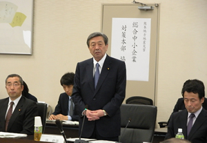 | 2016/04/26 | 熊本地方地震災害総合中小企業対策本部協議会 | | 4月25日、経済産業省において、全国商店街振興組合連合会、日本商工会議所、全国商工会連合会、全国中小企業団体中央会、商工組合中央金庫、日本政策金融公庫他を集め、平成28年熊本地震に対する「熊本地方地震災害総合中小企業対策本部協議会」が開催された。協議会には本部長の林経済産業大臣、副本部長の鈴木副大臣、豊永中小企業庁長官等が出席され、全振連からは被災地情報及び現時点における支援状況、現地からの要望等を発表した。