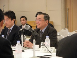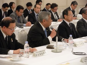 | 2015/04/20 | 経済産業大臣と中小企業関係団体との懇談会開催 | | 4月20日、東京都千代田区のホテルルポール麹町にて、宮沢経済産業大臣と全国商店街振興組合連合会、日本商工会議所、全国商工会連合会、全国中小企業団体中央会の中小企業関係4団体の懇談会が開催された。坪井理事長から、賃上げは所得向上により消費喚起を促し経済の好循環を生み出すものとして期待しているが、まちづくり、消費喚起対策について引続き十分な対応と、商店街へのつなぎ融資に対してもより一層の支援を要望した。懇談会には宮沢経済産業大臣、北川中小企業庁長官等が出席され、全振連からは坪井理事長、本吉専務理事が出席した。
